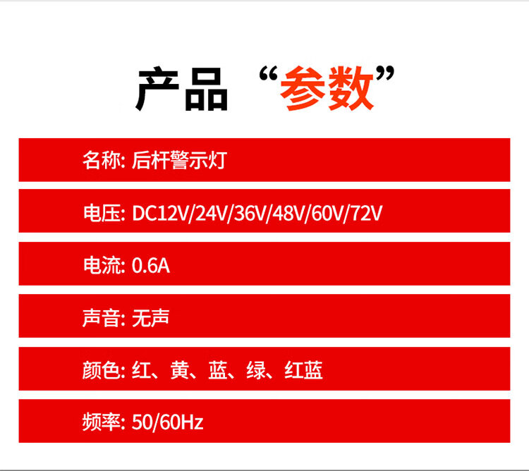 12v紅色 24v紅色 36v紅色 48v紅色 12v黃色 24v黃色 12v紅+藍(lán) 24v紅+藍(lán) 伸縮桿不含燈 36v紅+藍(lán) 48v紅+藍(lán) 60v紅色 60v黃色 60v紅+藍(lán)
